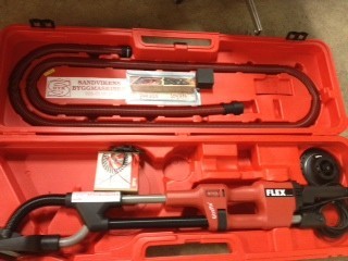 - Utsugssystem, skyddskåpa med borstkrans. Flexibel sugslang från sliphuvud till anslutningsrör. Anslutningsmöjlighet för FLEX industri- och säkerhetsdammsugare